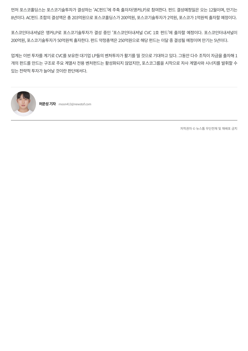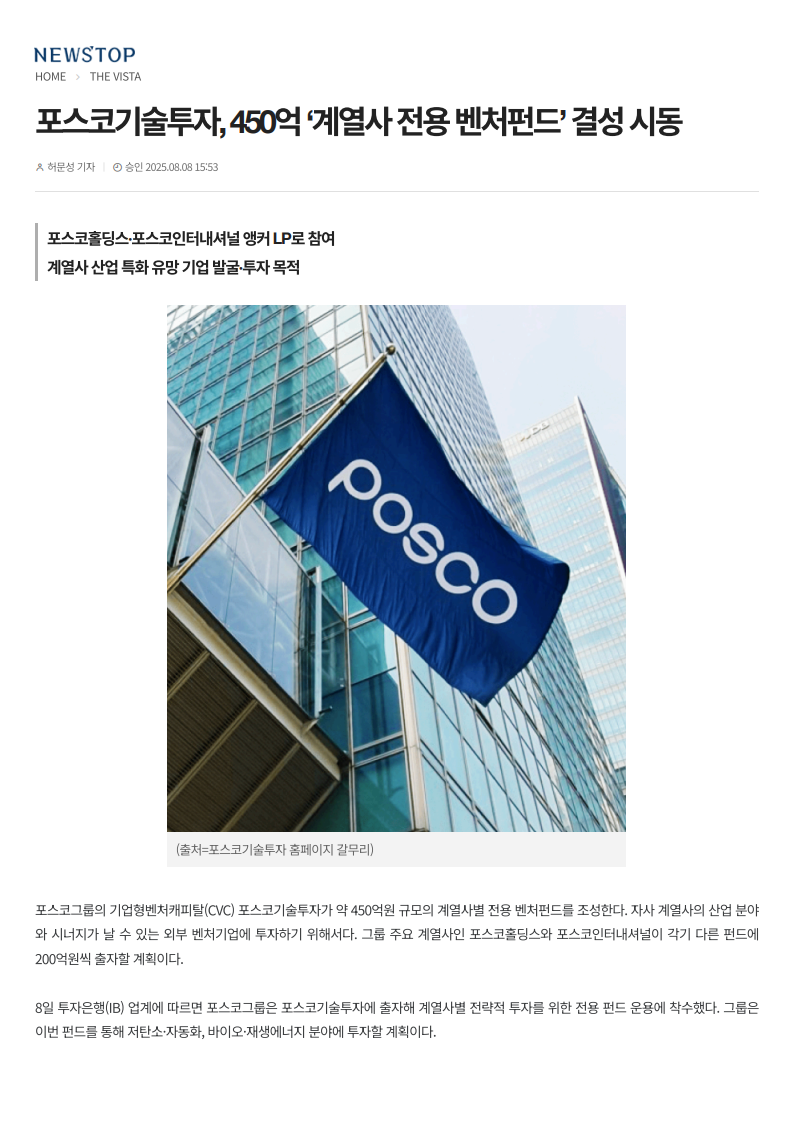 포스코기술투자, 450억 ‘계열사 전용 벤처펀드’ 결성 시동